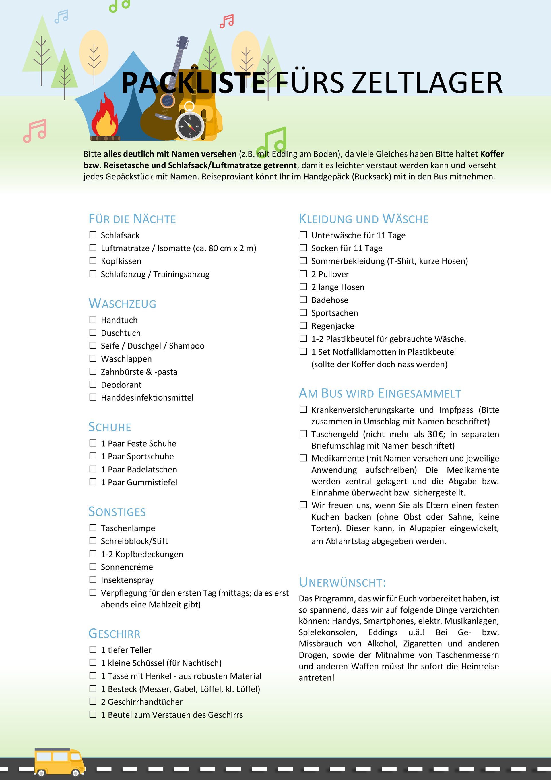 Was ihr für das gesamte Lager an Dingen mitnehmen müsst, verraten wir Euch nochmal in der angefügten Packliste.